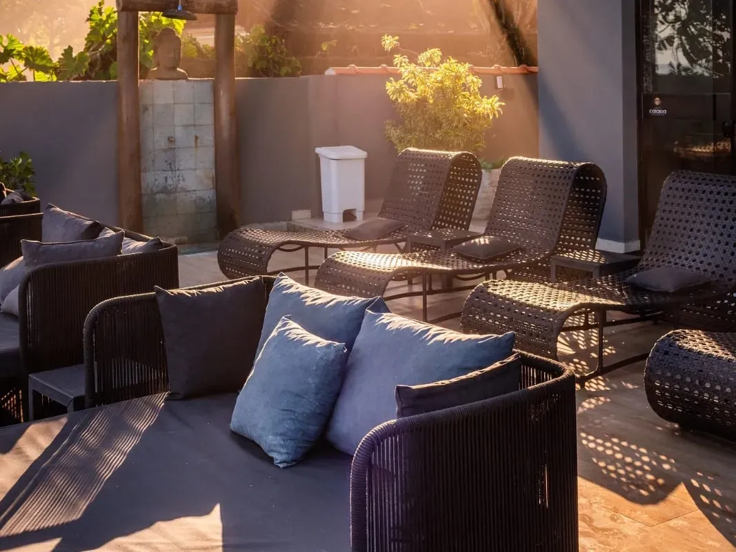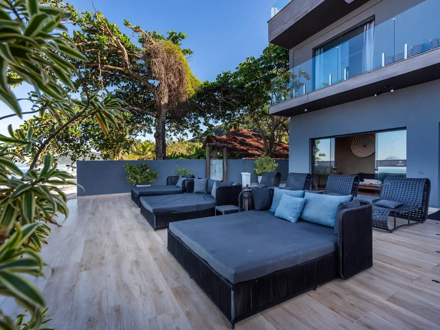 Nossa área de lazer à beira-mar foi pensada para proporcionar momentos de puro relaxamento.