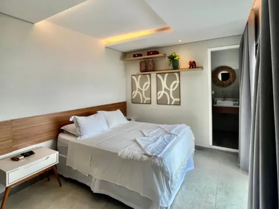 Seu diferencial está na encantadora vista lateral para o mar de sua janela, que permite apreciar o suave som das ondas e sentir a tranquilidade da praia mesmo de dentro do quarto.