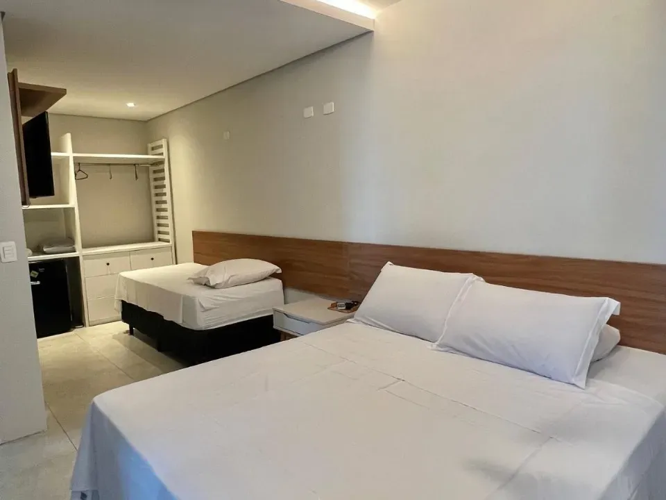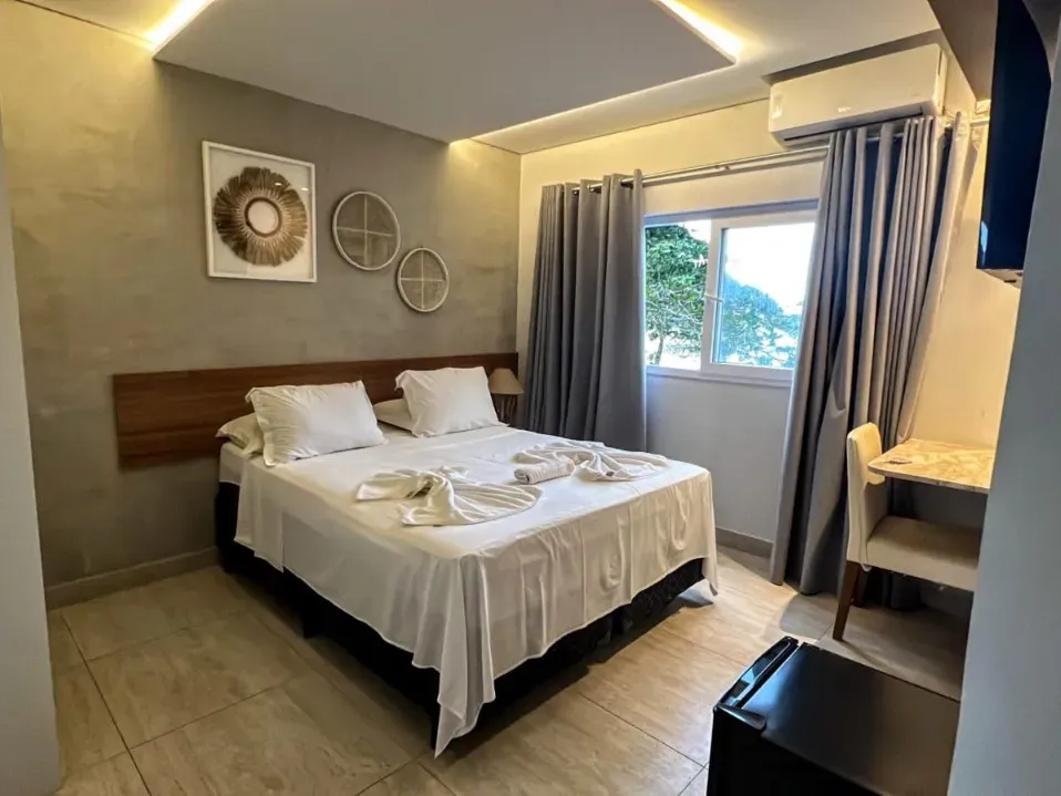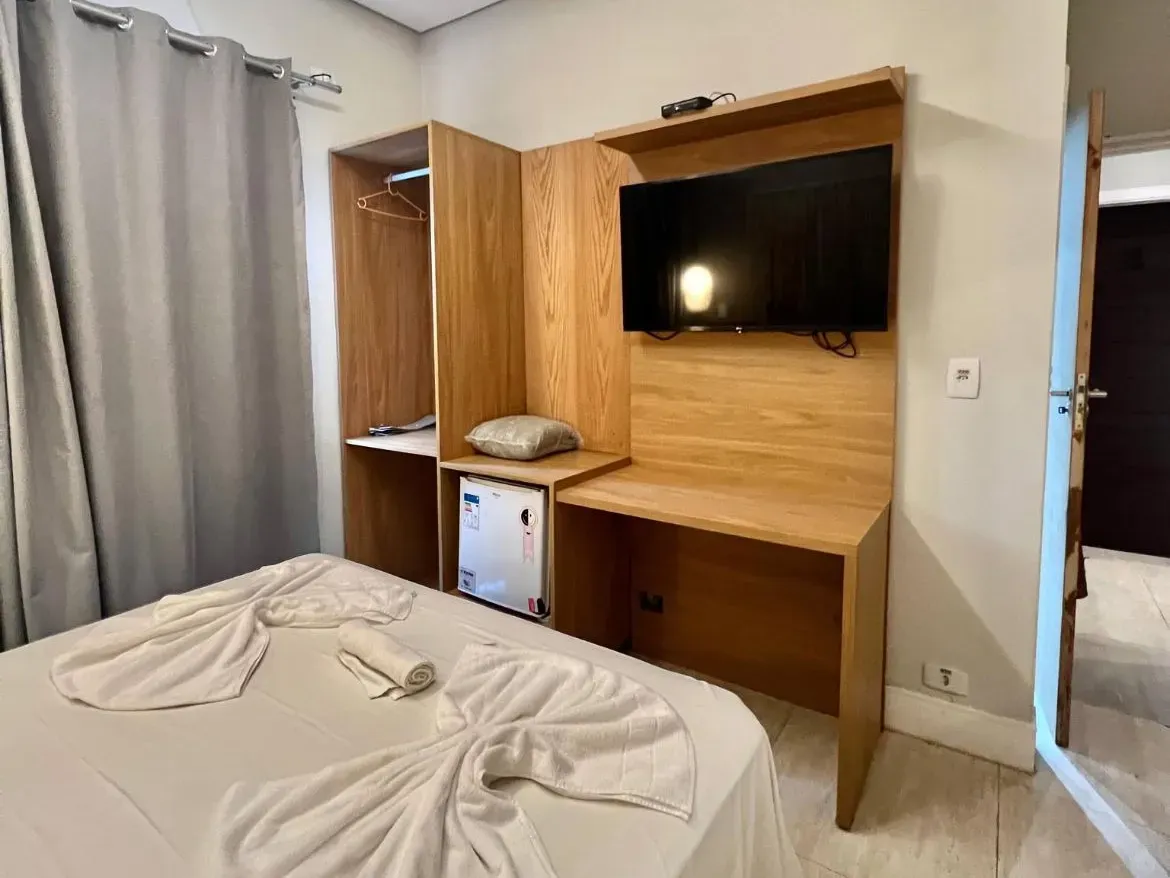 Para completar, a suíte oferece todas as comodidades essenciais para o seu bem-estar: TV Smart, ar-condicionado e um banheiro aconchegante, pensado com carinho para tornar sua estadia simplesmente inesquecível.