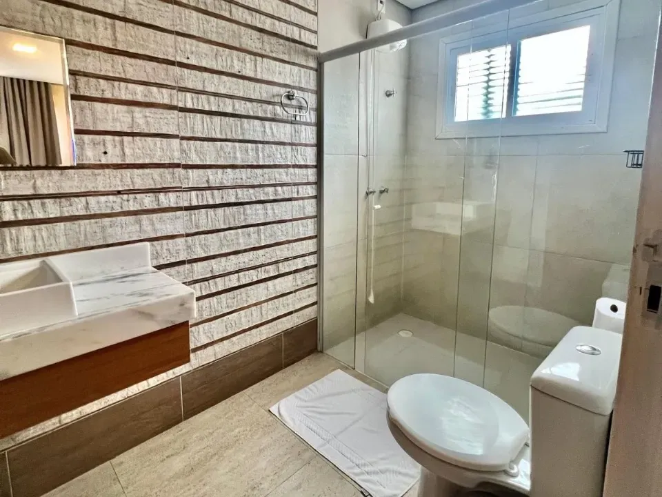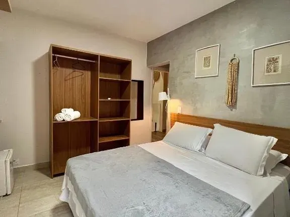 Para tornar sua estadia ainda mais agradável, a suíte conta com todas as comodidades essenciais: TV Smart, ar-condicionado e um banheiro aconchegante, pensado com atenção ao seu bem-estar.