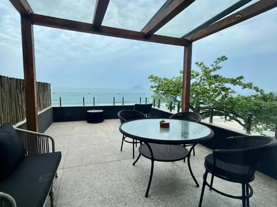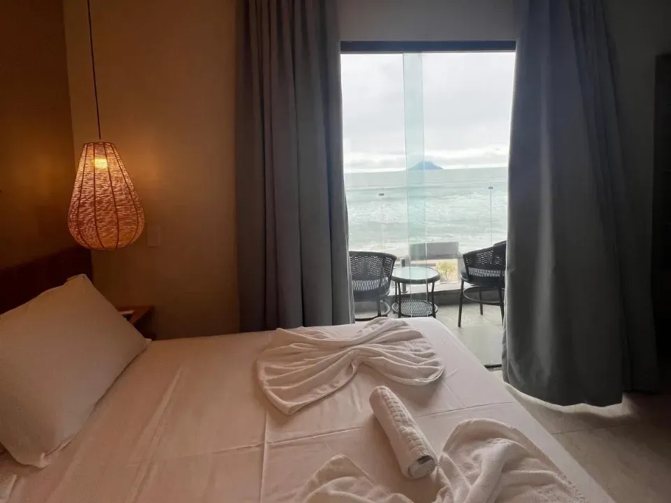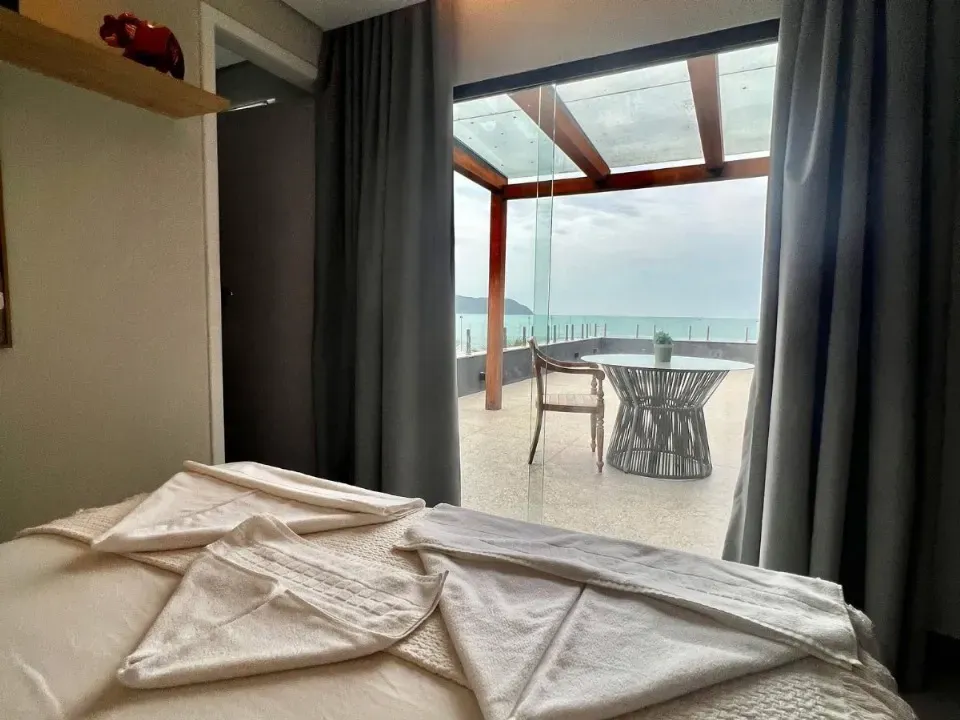 Localizada em nossa cobertura, esta suíte oferece exclusividade e conforto para quem busca o melhor da experiência à beira-mar. Com uma vista deslumbrante e uma varanda ampla, você pode apreciar diariamente o nascer e o pôr do sol como verdadeiros espetáculos da natureza.